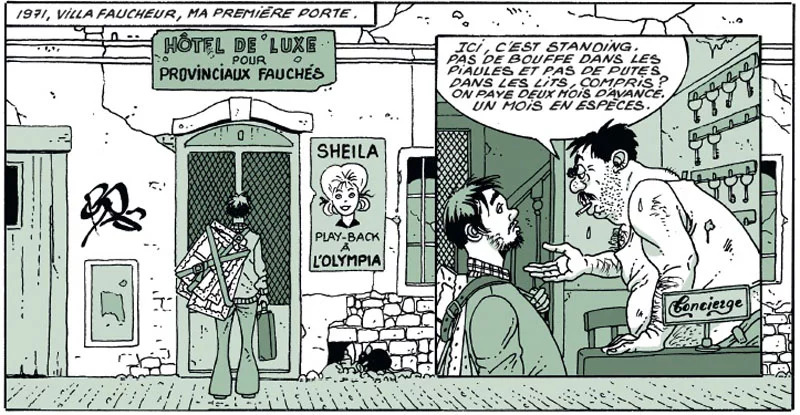 Les éditions Glénat, par l’intermédiaire de Franck Marguin, m’ont suggéré d’écrire et dessiner une autobiographie de mes débuts (de mon arrivée à Paris (1971), à la sortie de mon premier album (1977).