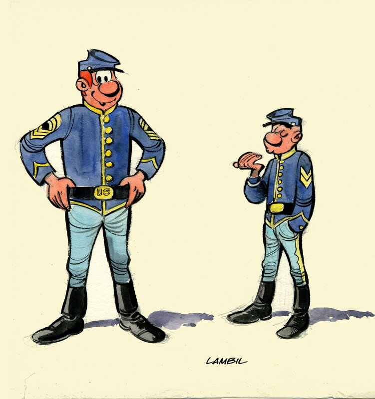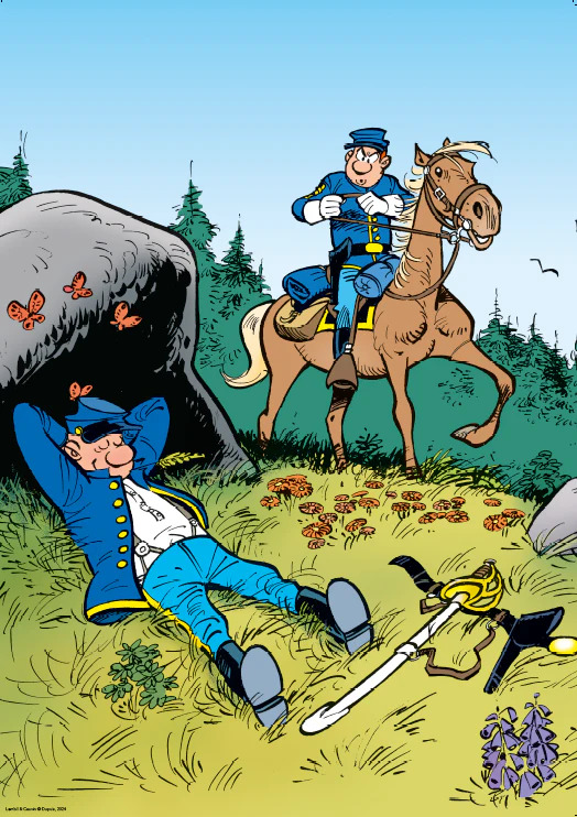 Véritables personnages iconiques de la bande dessinée franco-belge, le Sergent-chef Chesterfield et le Caporal Blutch sont mobilisés depuis 1968. Véritable exploit puisque la Guerre de Sécession, conflit américain sanglant, a duré à peine 4 ans (!). Depuis plus de 55 ans, les deux soldats nordistes connaissent de nombreuses péripéties (et de multiples gags). D’abord sous le trait de Salvérius puis de Lambil (en passant par celui de l’espagnol José Luis Munuera), les Tuniques bleues ne vieillissent pas.