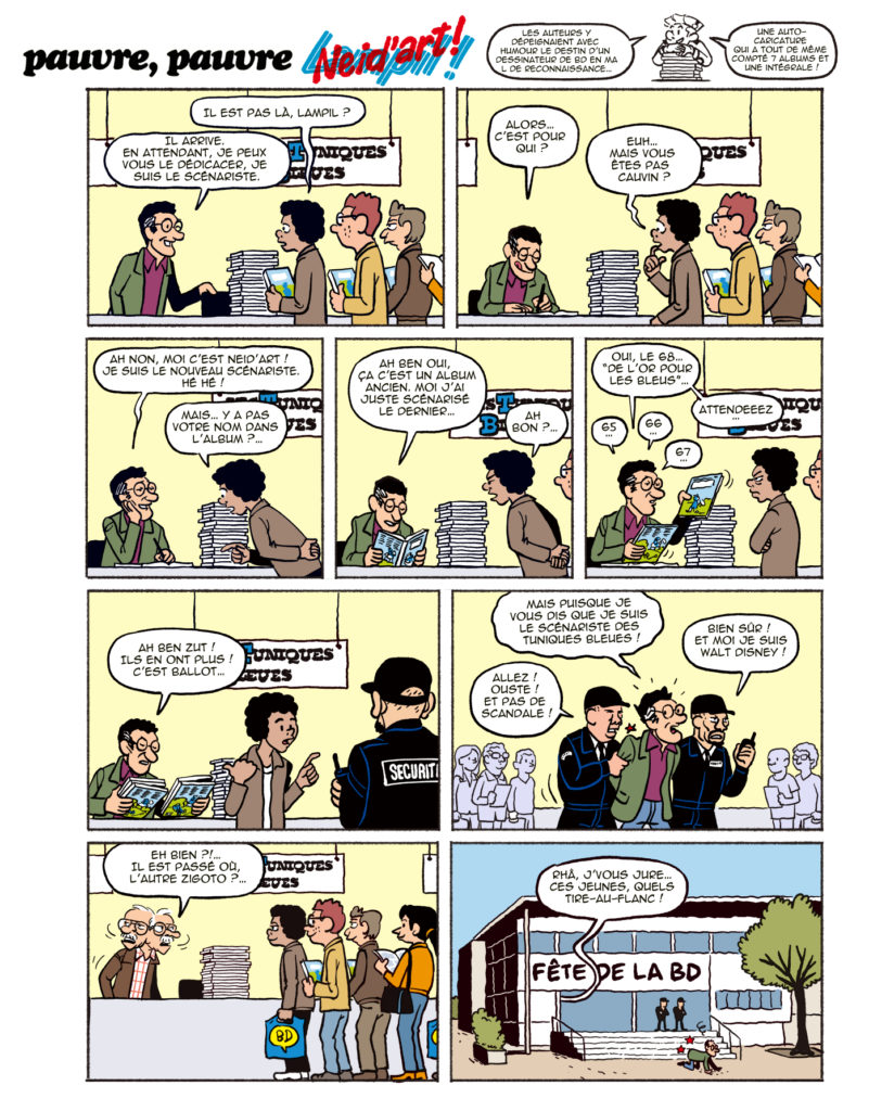 À propos d’autofiction, les premiers à en avoir fait en BD (franco-belge), ce sont… Lambil et Cauvin, avec leur série Pauvre Lampil. J’ai tenu à leur rendre hommage dans une petite BD parue récemment dans Spirou, intitulée Pauvre Neid’art.