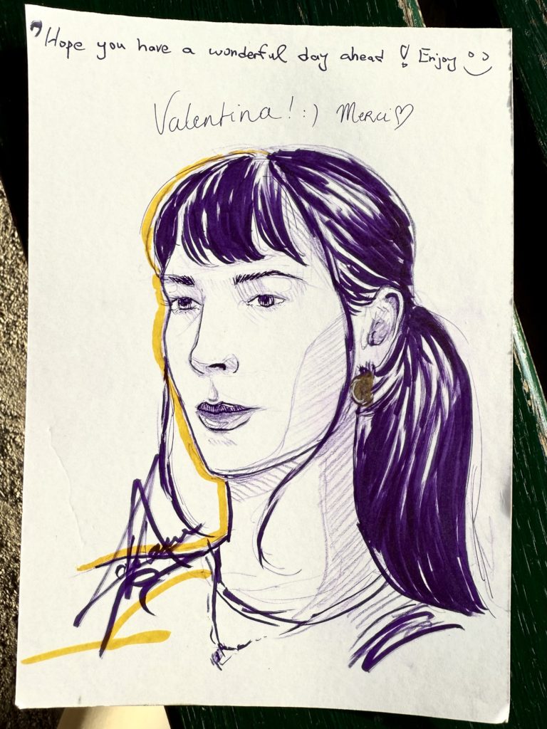 Je souhaite réaliser des vidéos en hiver. J’ai commencé en 2024 mais à l‘arrivée du froid j’ai fait une longue pause. Cette année, je me lance le défi de sortir et dessiner malgré la mauvaise météo. J’aimerais sortir davantage de Paris. Je me suis rendue récemment à Rennes et j’aime aller également au Festival d’Avignon.