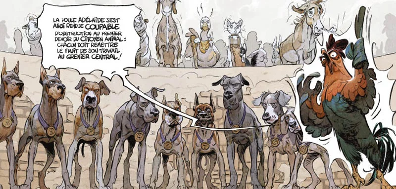 Le scénariste Xavier Dorison a été marqué par la lecture de « La Ferme des animaux » – en particulier la fin. En effet, Orwell affirme que toute révolution est vouée à l’échec puisque ceux qui ont été dominés deviendront tôt ou tard des maîtres. Xavier voulait évoquer la désobéissance civile car en Histoire, il y a l’exemple de Gandhi ou de Nelson Mandela qui ont lutté contre les régimes autoritaires et qui les ont vaincus.