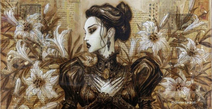 Dessinateur, illustrateur et peintre du format grand large, Olivier Ledroit s’intègre dans l’univers des « Fleurs du mal » (1857). Le chef d’œuvre de Charles Baudelaire intrigue toujours car il mêle merveilleusement dans ses vers la noirceur et la beauté. Avec son livre « Les Fleurs du mal« (Editions Glénat 2025), Olivier Ledroit propose un regard singulier sur l’univers du poète et va même plus loin, à travers le prisme de son propre univers graphique. Des créatures spectrales envahissent un Paris ancien et fantastique.