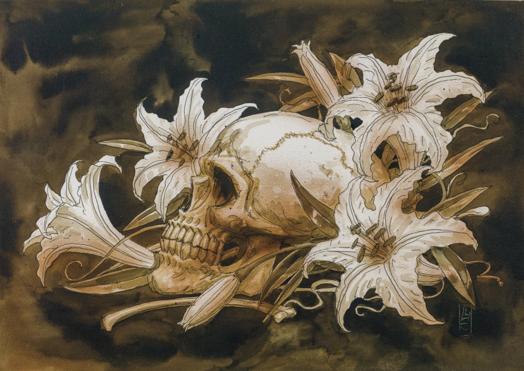 L’œuvre « Les Fleurs du mal » fait écho aux vampires. Il y a un aspect certainement morbide. Les femmes que je dessine sont bien souvent des créatures fantastiques.
