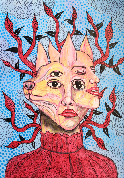 J’ai toujours adoré jouer avec les couleurs, mais aussi mélanger les techniques comme, par exemple, l’encre et les crayons de couleurs, l’acrylique, l’huile aussi parfois, faire des collages des fois…