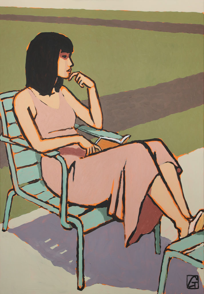 Je les peins dans des instants d’entre-deux ou d’attente, pensives ou endormies. C’est une façon pour moi de raconter à nouveau des histoires, stimuler l’imaginaire des spectateurs. Certains pensent qu’elles sont tristes mais pas pour moi. C’est juste qu’esthétiquement, je ne trouve pas le sourire intéressant.