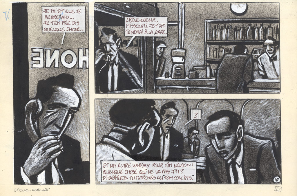 En 1986, le nouveau directeur de la publication de Futuropolis, Jean-Marc Thévenet, m’a demandé de participer à sa nouvelle collection. « Crève-Cœur » est un mélange d’ambiance Jazz et de roman noir. Il est le reflet de ma production de l’époque, et n’a pas été pensé comme un « manifeste ».