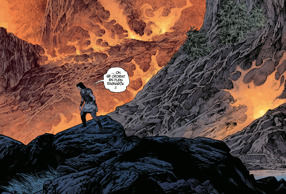 Christophe Bec : Le coloriste Gaëtan Georges a fait un travail incroyable. Pour la scène de l’incendie de forêt, j’ai eu comme référence les incendies de Californie de 2025. Toute la zone était couverte d’une couleur orange.
