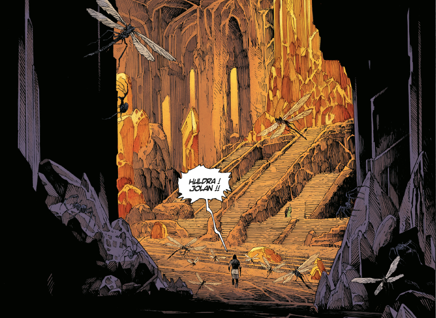 Christophe Bec : Mon précédent livre, « Inexistences » (2023), était déjà un hommage aux dessinateurs de Métal Hurlant. L’ambre est clairement une référence au travail de Moebius.