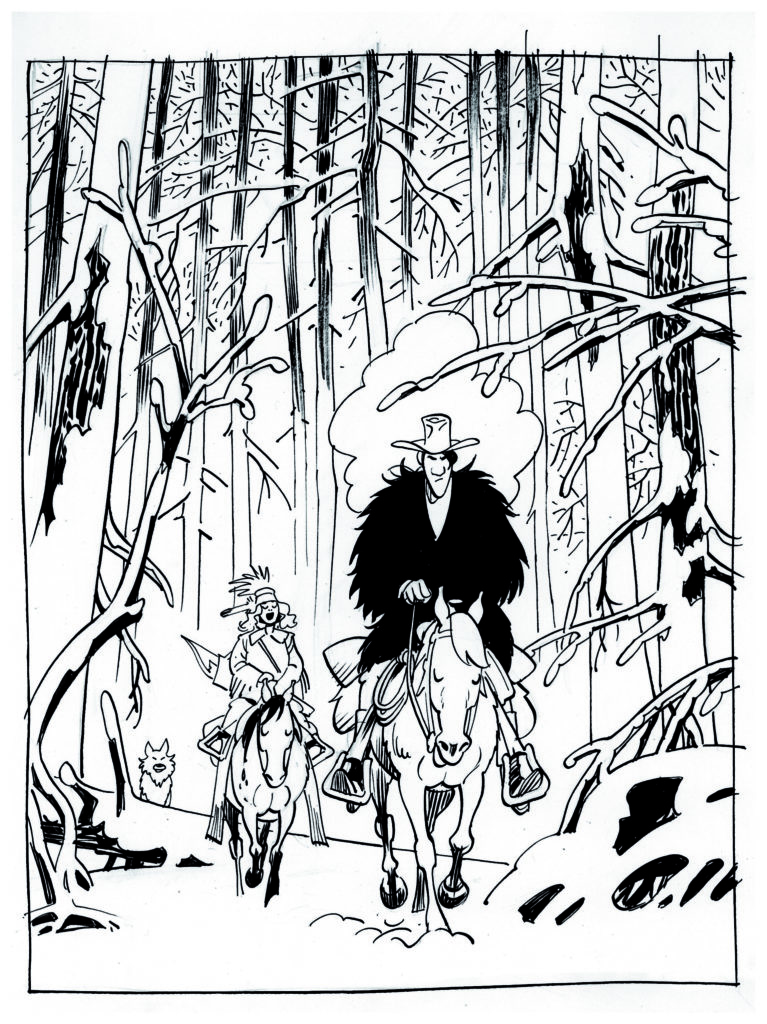 Oui. « L’Homme qui tua Lucky Luke » (2016) se déroulait dans des montagnes pluvieuses tandis que « Wanted Lucky Luke » (2021) se passait dans un désert aride. Dans ce nouvel album, je voulais faire vivre à Lucky Luke une épreuve longue et difficile. Le froid, la neige et la nature sont le nœud de l’intrigue.