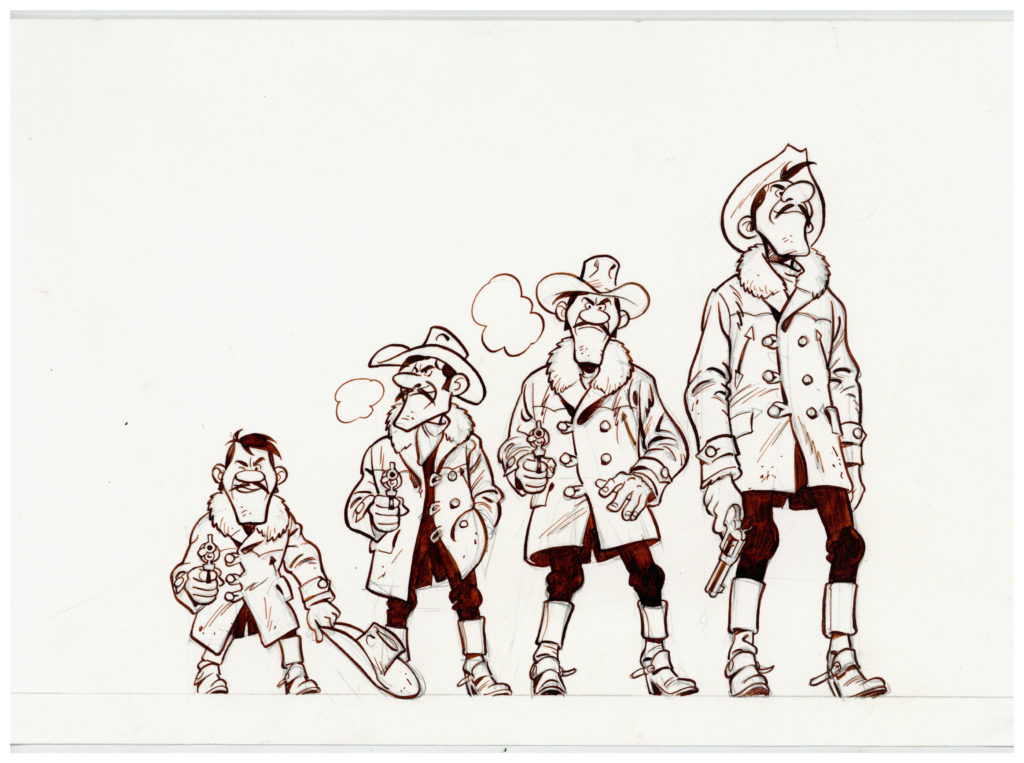 « La Longue marche de Lucky Luke » raconte une traque. Les frères Dalton sont les meilleurs bandits pour retrouver Luke, ils y ont toute leur place. Même si je ressentais une petite pression, j’ai eu un immense plaisir à les intégrer dans mon univers graphique. Ils ponctuent mon récit d’humour mais aussi de danger. Joe Dalton est un personnage agressif et sadique. C’est Averell qui est le plus drôle.