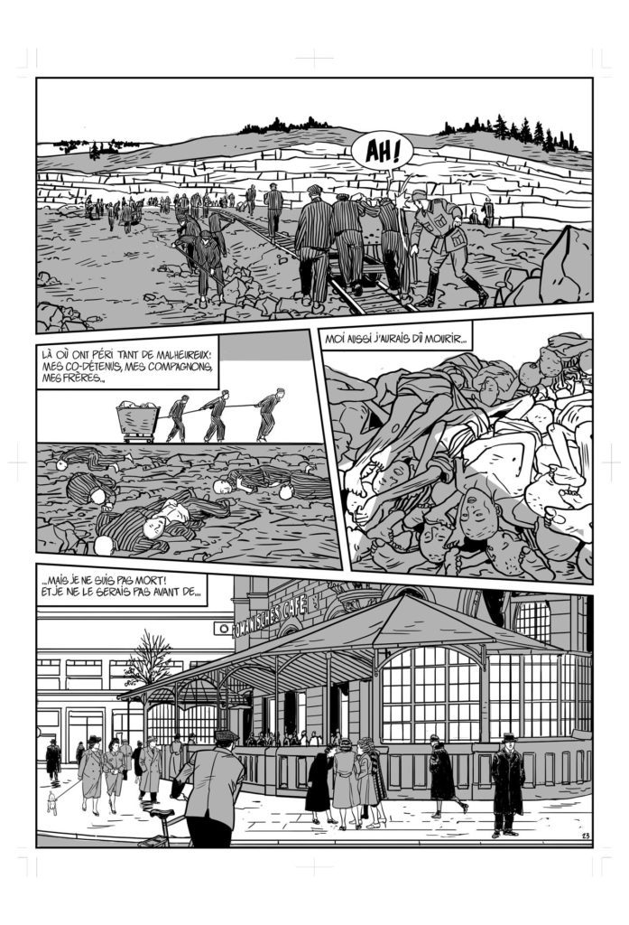Les scènes d’amoncellement de cadavres furent assez éprouvantes à dessiner. Cependant, « Deux dans Berlin » est un roman noir et la mort est forcément omniprésente. Difficile d’y échapper.